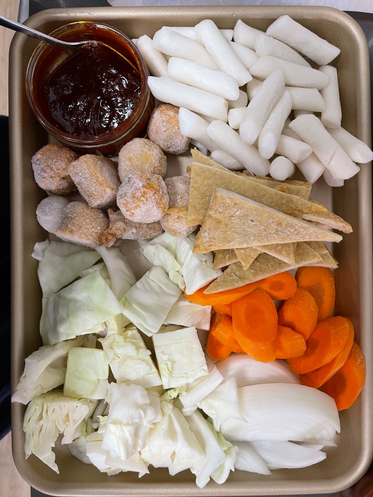 Tteokbokki is my favorite Korean food, among many others. It consists of chewy rice cake, tender fish cake, and a spicy note from Korean fermented chili paste. All these ingredients come together for an ultimate experience.